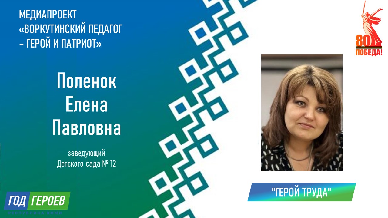 Трудовую деятельность в системе образования г. Воркуты Елена Павловна Поленок начала в 1988 году после окончания Коми государственного педагогического института. С удивительным трудолюбием и целеустремленностью она прошла свой профессиональный путь: от секретаря-машинистки до психолога, от педагога-дефектолога до руководителя, в сердце которого всегда бился ритм жизни детского сада.